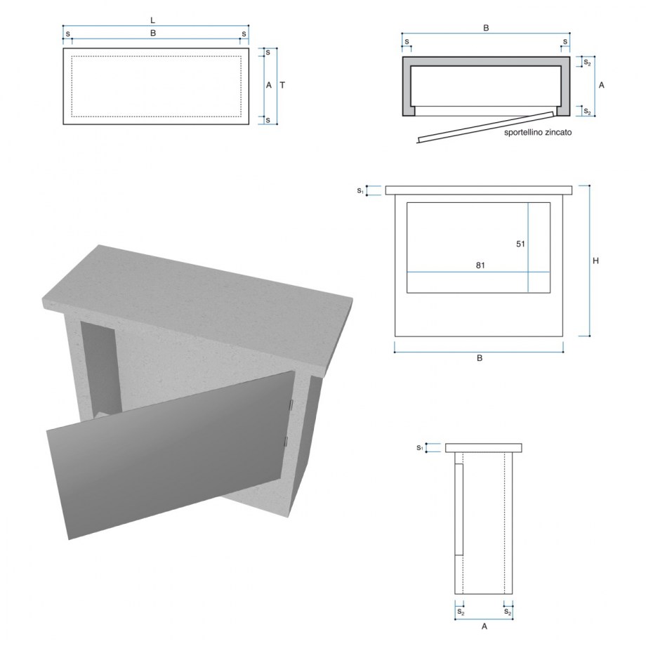 Centralina per allacciamento contatore acqua, costruita in calcestruzzo vibrato e completa di sportellino di chiusura in acciaio zincato con serratura.