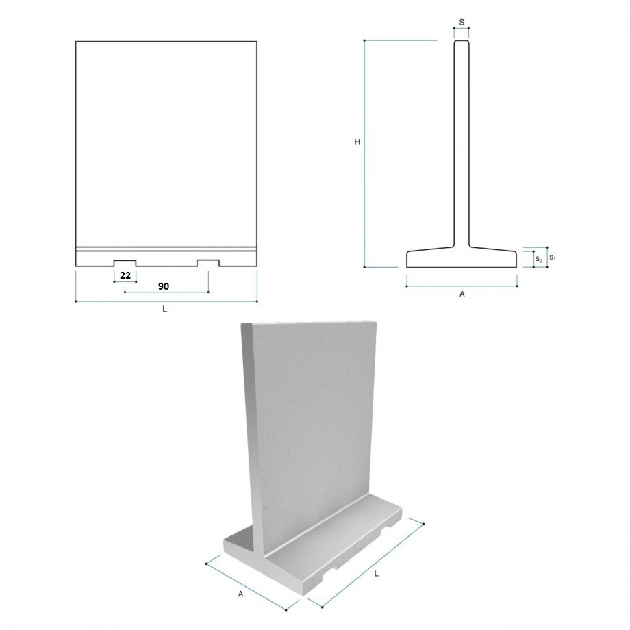 Muro di contenimento per cereali, costituito da elementi in calcestruzzo armato vibrato di lunghezza 200 cm ed altezza variabile: 200 cm, 250 cm oppure 300 cm.