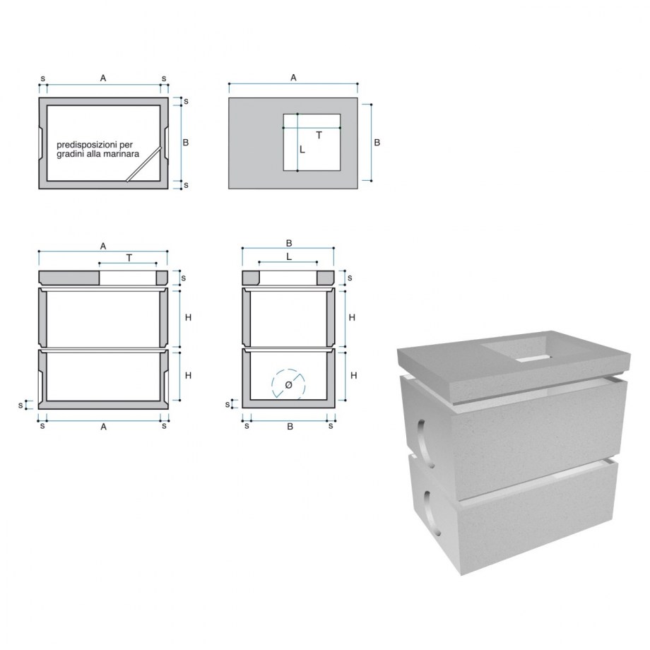Pozzetto realizzato con elementi prefabbricati in calcestruzzo armato vibrato, munito di impronte laterali per l'inserimento dei tubi con incastro a mezzo spessore.