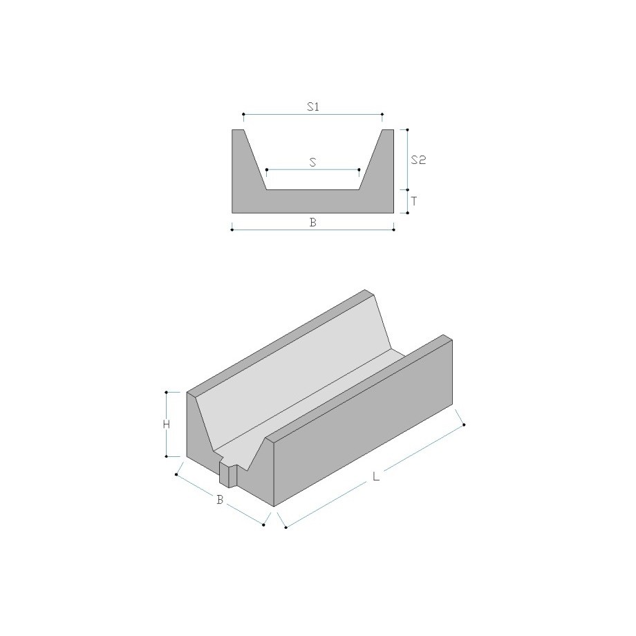 Canale di raccolta a sezione trapezoidale, realizzato in elementi prefabbricati in calcestruzzo vibrato, di lunghezza 100 cm con incastro maschio-femmina alla base, da posare su fondazione di calcestruzzo magro, compresa la stuccatura dei giunti.